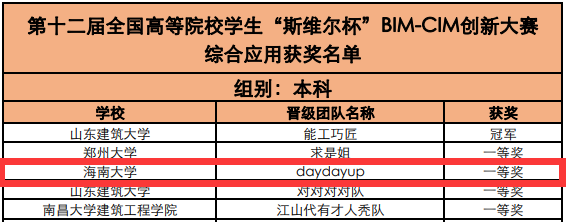 2021年5月22日,第十二届全国高等院校“斯维尔杯”BIM-CIM创新大赛圆满落幕。本次比赛由中国建设教育协会主办、深圳市斯维尔科技股份有限公司承办,累计报名院校400多所,参赛队伍1600多支,受到广大建筑类院校师生的热烈响应。本比赛推动了BIM、CIM技术在高等院校的教学与应用,为建设行业信息化发展培养了BIM、CIM技术创新型和复合型人才,成为工程造价和工程管理专业最具影响力的比赛之一。本届大赛分为BIM建模、专项应用和综合应用三个赛项,从不同方面考察个人技能和团队协作能力。由于疫情总体防控原因,本次比赛依然采用线上形式,通过腾讯会议进行线上监测,维护比赛公平性,并增加了“线上答辩”和“正向一体化应用”等创新型举措,得到了高校老师和专家的高度认可。公司代表队“daydayup队”以曹新颖老师为指导老师,由工程管理2018级胡贝宁、李磊,土木工程2018级肖钧垚,建筑学2017级李雨晴,建筑学2018级唐娜五位同学组成,参加BIM建模、专项应用和综合应用三个赛项并取得优异成绩。在BIM建模赛项中,李磊、胡贝宁同学分别获得土建一等奖和土建三等奖;在专项应用中,获得绿色建筑分析专项二等奖、规划与设计专项一等奖、工程造价专项冠军奖和工程管理专项冠军奖;在综合应用中,获得本科组一等奖。恭喜公司代表队取得的优异成绩,并预祝公司同学再创辉煌!(图文:英国be365官网BIM协会)