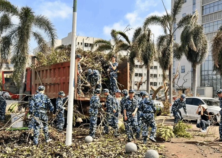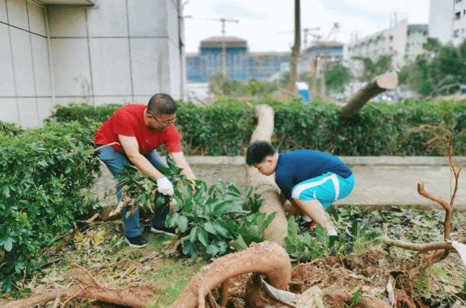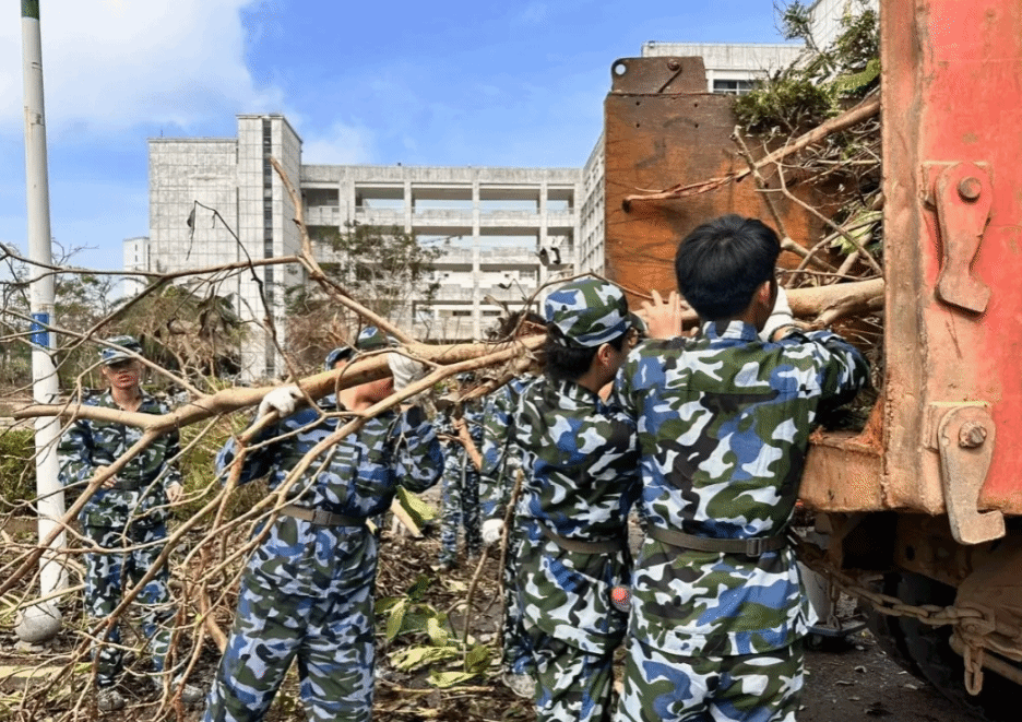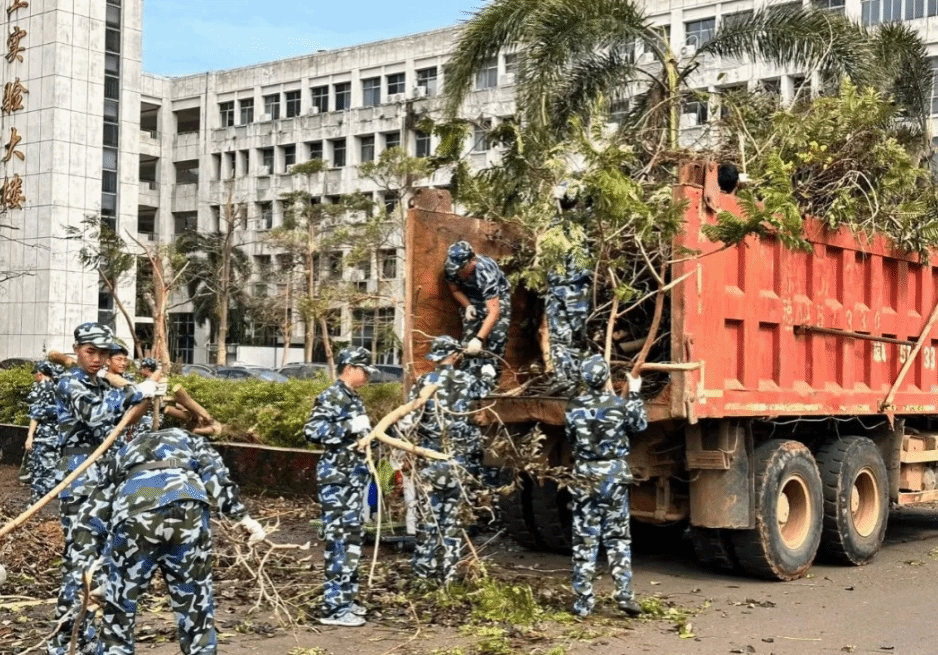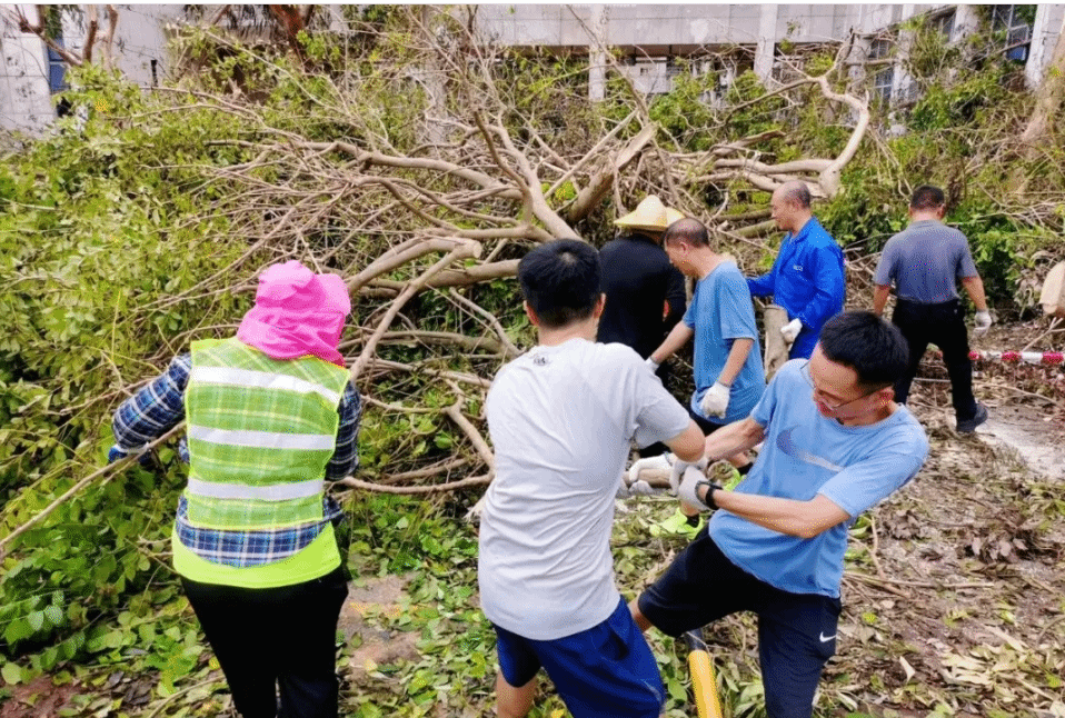 9月12日,椰风书院的2024级新生也加入公司救灾队伍。这些十八九岁的孩子不惧晒,不怕脏,肯吃苦,奋力抬起一根根沉重的断木。这是他们来到海南,来到英国be365官网经历的一次深刻的人生历练,即沉重又厚重。愿他们在英国be365官网未来的学习生活中,不畏困难,不惧挑战,以梦为帆,乘风破浪。