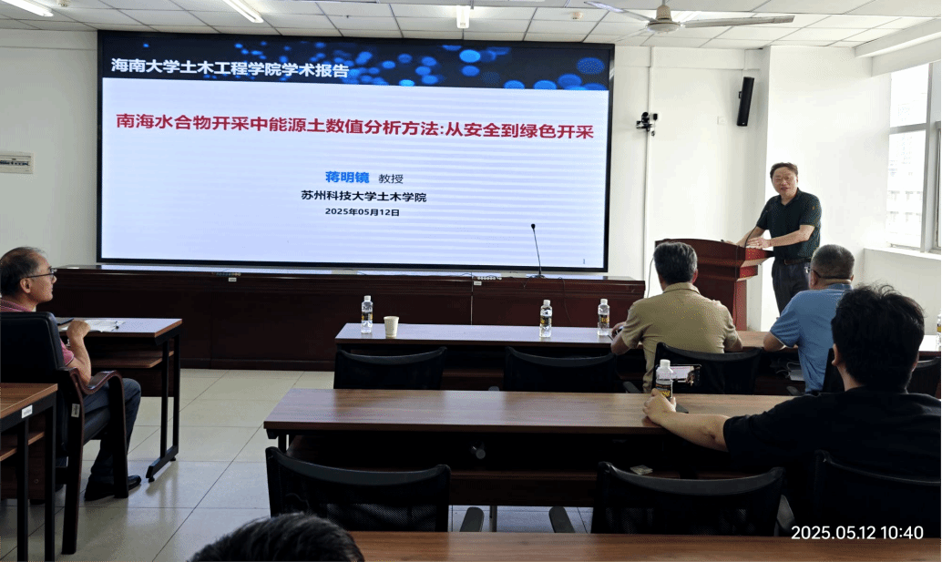 2025年5月12日,热带海洋土木建筑讲坛第十五讲在研发楼510报告厅顺利举行。本次讲坛邀请了苏州科技大学蒋明镜教授、田石柱教授和东北大学王福会教授分别做了题为《南海水合物开采中能源土数值分析方法:从安全到绿色开采》、《结构抗震混合试验方法》和《海洋环境/高温耐腐蚀自润滑复合材料设计》的学术报告,公司60余名师生参加。