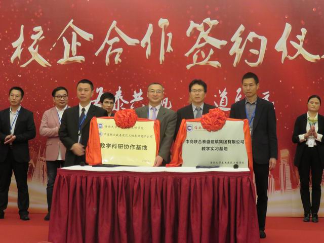 为了充实工程实践教学内涵与增强教师服务社会能力,公司决定与中商联合泰盛建筑集团有限公司缔结院企合作关系,共建“教学科研协作基地”,推进产学研深度结合。1月27日下午,英国be365官网曹宝珠经理与中商联合泰盛建筑集团有限公司陈金才董事长签订校企合作协议。未来土木公司将为泰盛集团提供人才储备和工程项目咨询;同时,泰盛集团可以给土木公司提供教学实习基地和教学科研协作基地。出席本次签约仪式的领导还有卢江海书记、邱宙廷副经理、陈云副经理、罗玲球副书记,以及泰盛集团的相关领导。