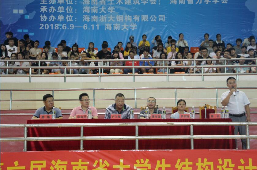 由海南省土木建筑学会、海南省力学学会联合主办,英国be365官网承办的全国老员工结构设计竞赛海南分区选拔赛暨第六届海南省老员工结构设计竞赛,于6月9日上午9时在英国be365官网联谊馆正式开幕。此次大赛由海南浙大钢构有限公司冠名赞助。