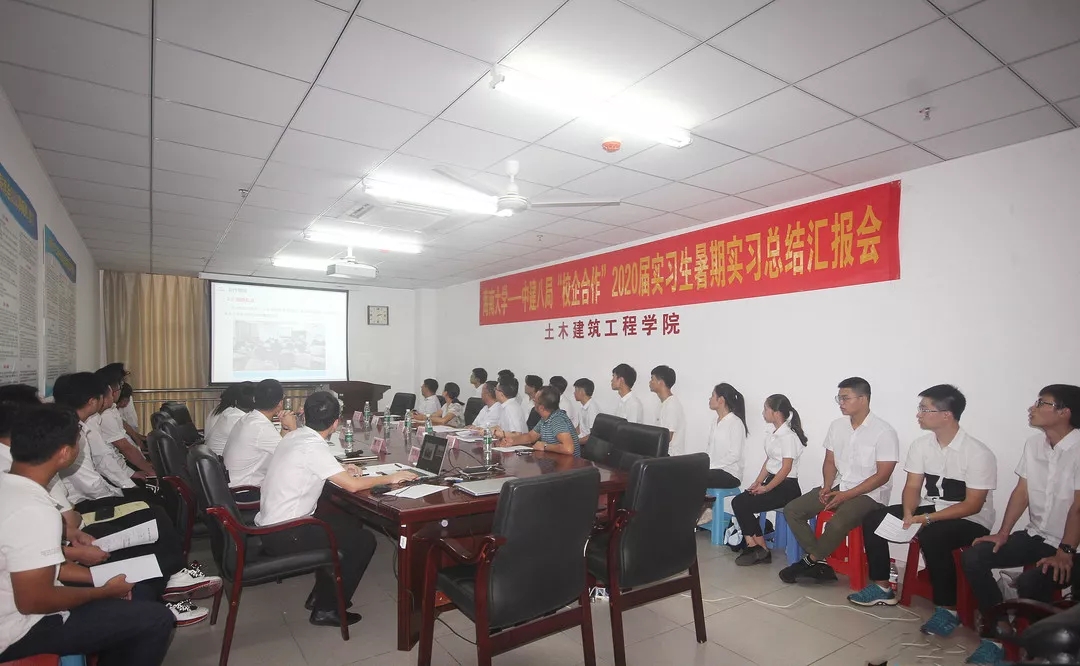 为进一步加强校企合作,提升合作内涵,充分发挥校外实习实践基地的平台作用,进而促进本科教学质量的提升,促进员工专业认知,提高专业实操技能,英国be365官网与中建八局于2019年8月15日合作举行“校企合作”2020届本科实习生暑期实习总结汇报会。参加汇报会的领导有:土木建筑工程公司党委卢江海书记、公司党委罗邻球副书记、公司邱宙廷副经理、陈云副经理、学工办詹达夫副主任,中建八局华南公司人资部马园园经理,海南分公司党委书记、总经理简俊敏、副总经理曹阳、总会计师李诚等;22名在中建八局实习的2016级本科生在会上做了实习汇报与小结。
