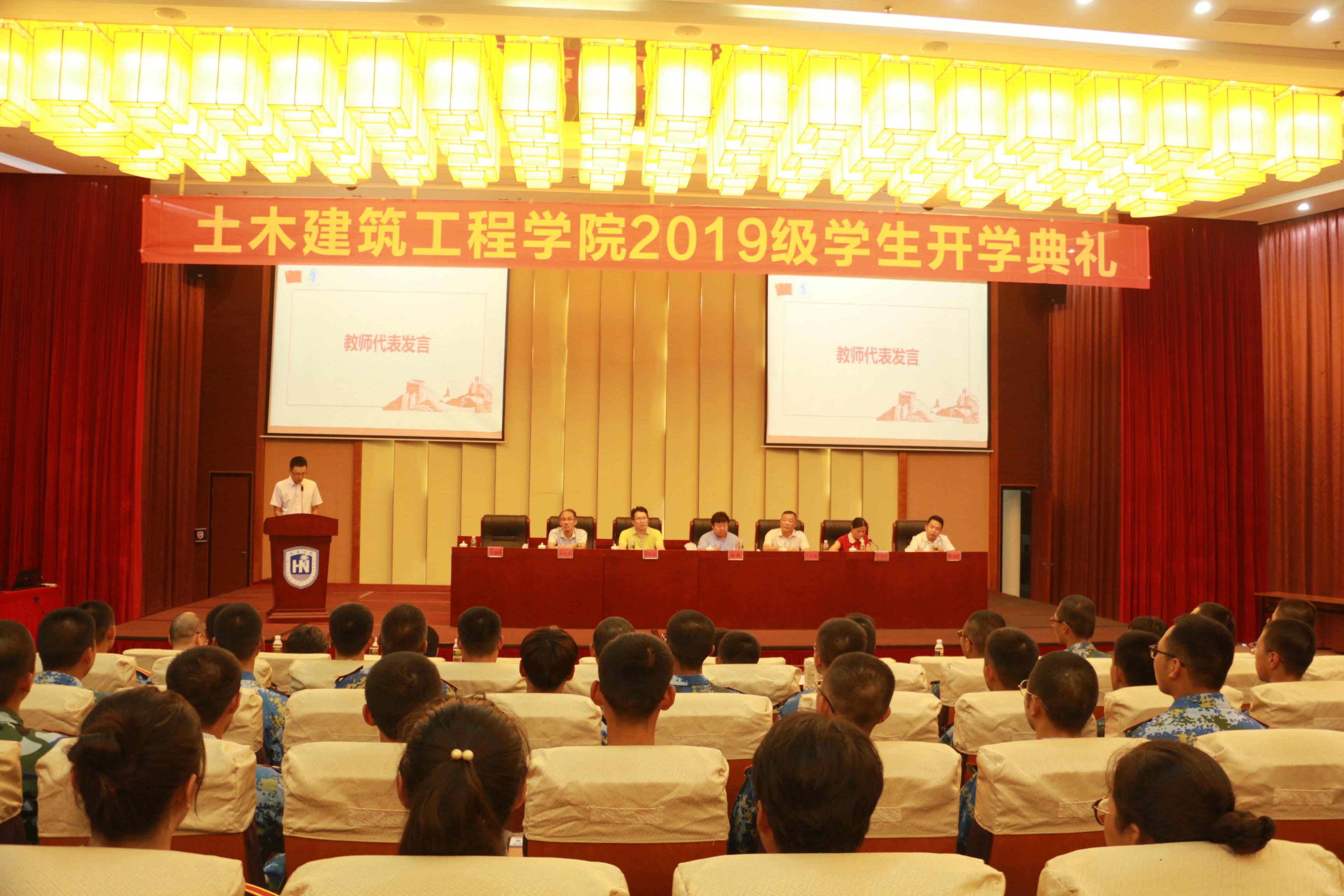 9月12日下午3点,公司在社科楼二楼报告厅举办2019级新生开学典礼。英国be365官网经理周智、公司党委卢江海书记、副经理邱宙廷、副经理张友良、土木工程系副主任王志佳老师、公司优秀员工现任中国建筑第二工程局有限公司海南分公司党委副书记的陈丕杰、19级新生班主任应邀参加了开学典礼。学工办主任李江俊老师、詹达夫老师、2019级辅导员牛玉老师以及来自全国各地的2019级的353名本科新生和20名研究生新生参加了开学典礼。典礼由公司党委罗邻球副书记主持。