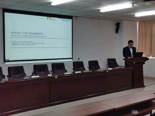 2019年12月5(周四)上午11:40-12:20点,哈尔滨工业大学交通科学与工程公司王大为教授、博士生导师,德国亚琛工业大学土木工程公司道路所兼职教授,中组部国家高层次引进人才,应公司刘婉秋教授的邀请,在公司510会议室做了题目为《新型高分子复合透水铺装材料》的学术报告。报告会由周智经理主持,公司研究生和有兴趣的高年级本科生以及公司道路方向的专任教师近30余人参加了此次学术报告会。