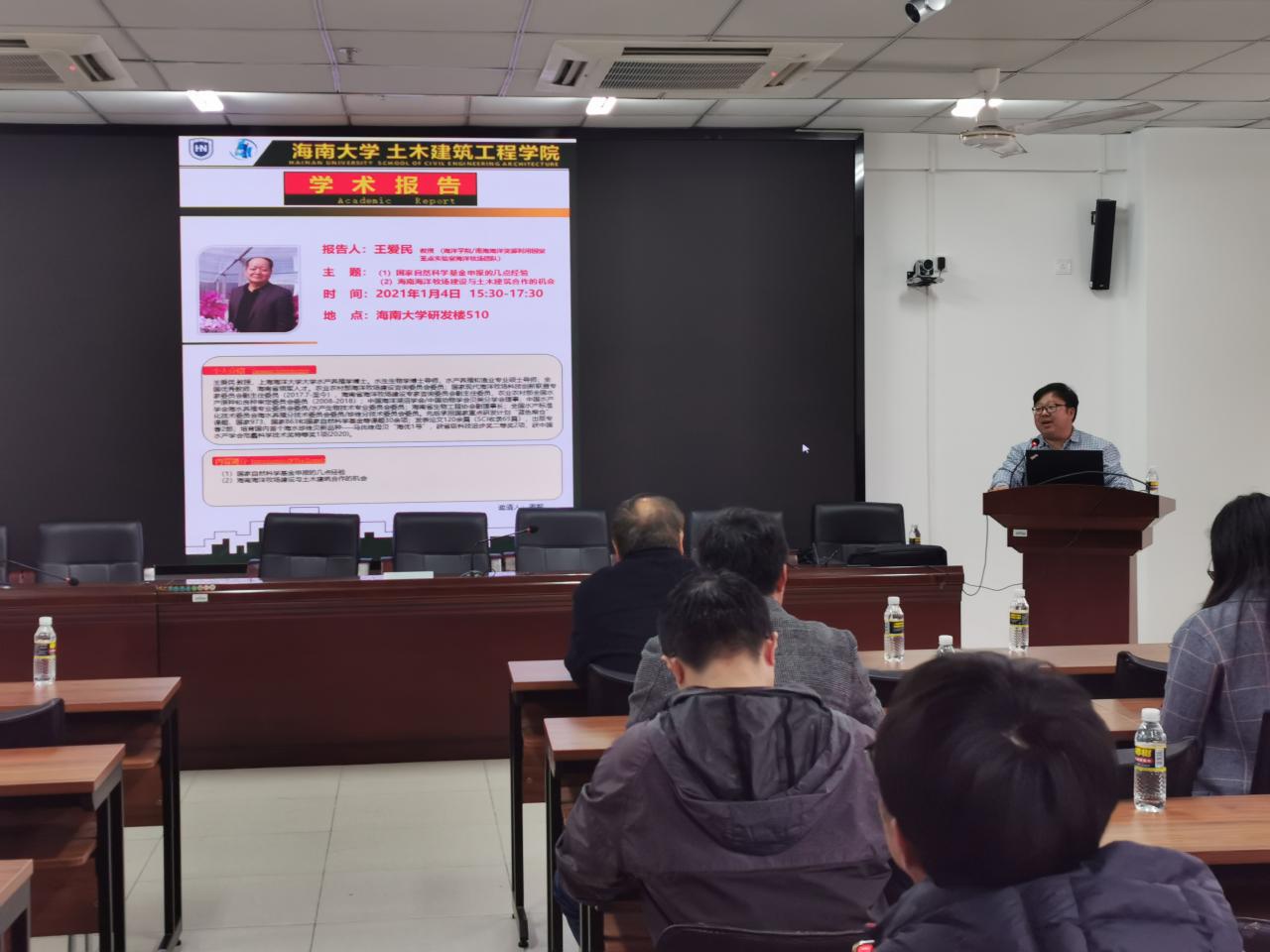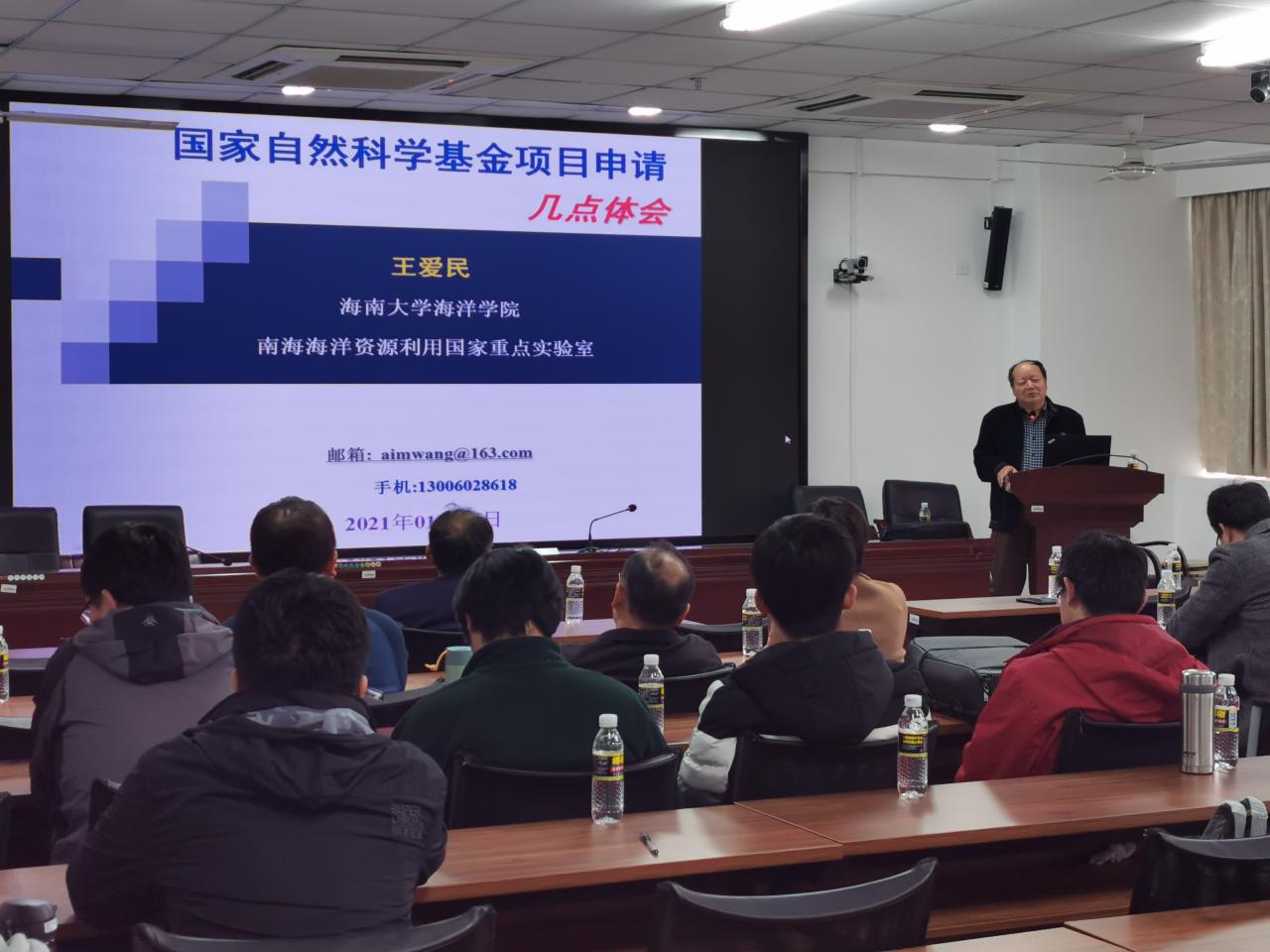 2021年1月4(周一)下午3:30-6:00点英国be365官网海洋公司/南海海洋资源利用国家重点实验室海洋牧场团队负责人王爱民教授应公司周智经理的邀请,在研发楼510报告厅为公司拟申报2021年国家自然科学基金的老师做了题为《国家自然科学基金申报的几点体会》和《海南海洋牧场建设与土木建筑合作的机会》学术报告。报告会由周智经理主持,我院拟申报2021年国家自然科学基金的教师近30人参加了此次学术报告会。