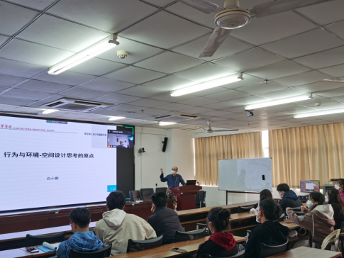 首先,主持人蒋老师隆重介绍了本次讲座主讲人白小鹏教授的工作履历及个人成就,随后讲座正式开始。白小鹏教授以国内环境心理学的发展沿革为起点开始讲座,后说明行为是人们在环境中心理活动的显现,观察和理解人与人群的行为,分析解读行为与周围环境的关系,是进一步理解建筑空间功能的实用性和适用性的原点。讲座过程中,白教授以有趣的行为实验以及行为图像解读为例,向同学们说明了不同空间环境对人的行为的影响,以及其对于建筑设计应用的启示。白教授的讲座生动幽默,建筑系的同学也展现出了浓厚的学习兴趣。