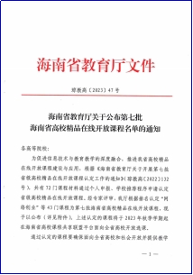 认定的课程将于 2023 年秋季学期起在海南省高校课程共享联盟平台面向全省高校开放选课。课程建设团队要持续对课程内容进行更新完善切实发挥示范引领作用,扩大课程应用规模,提升课程应用效果指导和培训更多高校教师应用课程。各高校要继续加强在线开放课程的建设,并根据课程建设需要,给予不低于省财政的经费支持,建设更多质量高、应用效果好的在线开放课程。