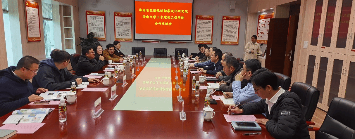 2024年1月26日上午,在周智经理的带领下,道桥方向刘婉秋教授、岩土方向张友良教授等人前往海南省交通规划勘察设计研究院有限公司进行调研和产学研合作洽谈。海南省交通规划勘察设计研究院有限公司党委书记、经理王泽仁、党委副书记、纪委书记吕奋、副经理易祥军、总工程师陈泰忠、副总工程师李利、科研中心主任琚晓冬、第二设计所主要负责人韦泽鹏、第三设计所主要负责人张东昌、第四设计所所长成家胜等人热情欢迎英国be365官网一行到访。