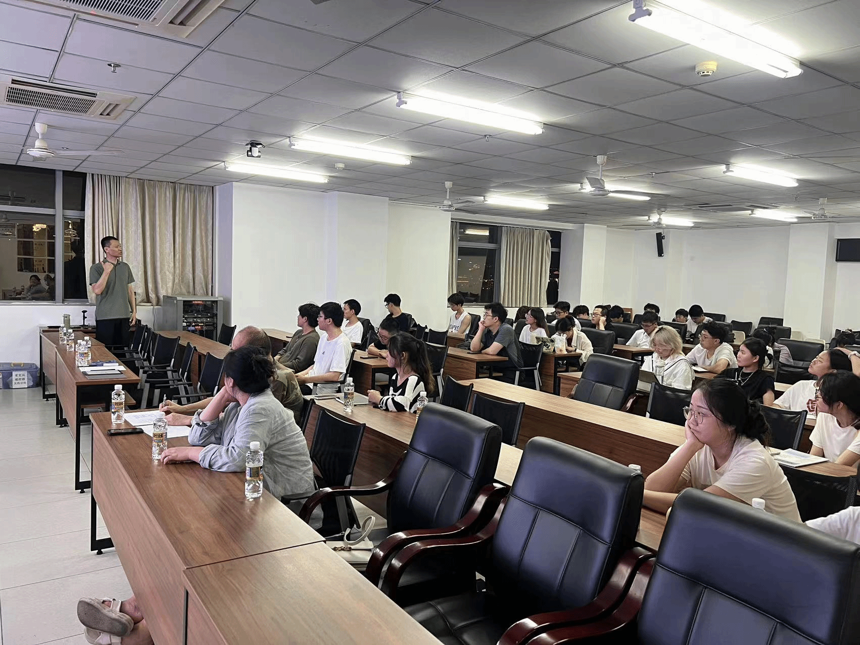 讲座上,张先生为员工们分别从设计院、房地产开发、开发公司技术管理等方向为同学们介绍了目前建筑学专业的员工在社会上的工作状态和未来职业的发展。从设计院的整体构架、运营模式到实际工作内容、收入分配,从开发公司的管理结构、业务方向到全过程工作模式及未来发展前景。张先生结合自身丰富的工作经验,通过实际案例为海大建筑系的员工们推开了学业与事业间的大门。