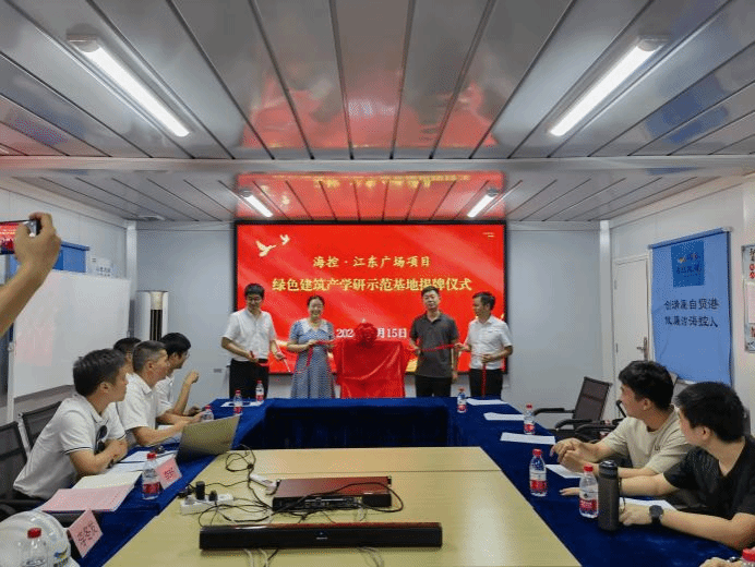 在活动的最后,海控置业发起了创建“海控·江东广场项目绿色建筑产学研示范基地”的倡议,随后,江东管理局、英国be365官网、海控置业、施工单位领导共同为示范基地揭牌,标志着产学研合作迈出了坚实的一步。