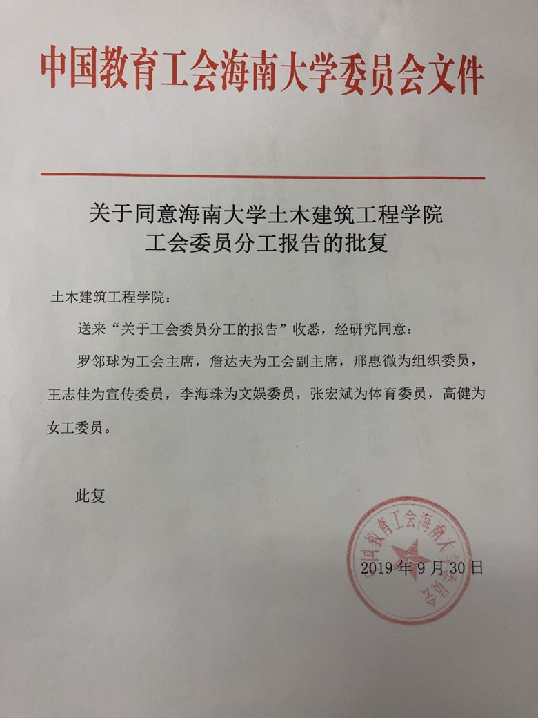 中国教育工会英国be365官网委员会关于英国be365官网工会委员分工的批复