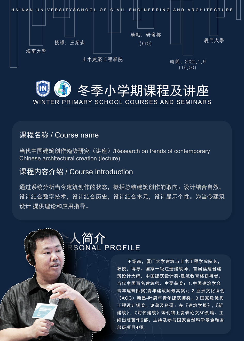 王绍森教授冬季小学期海报