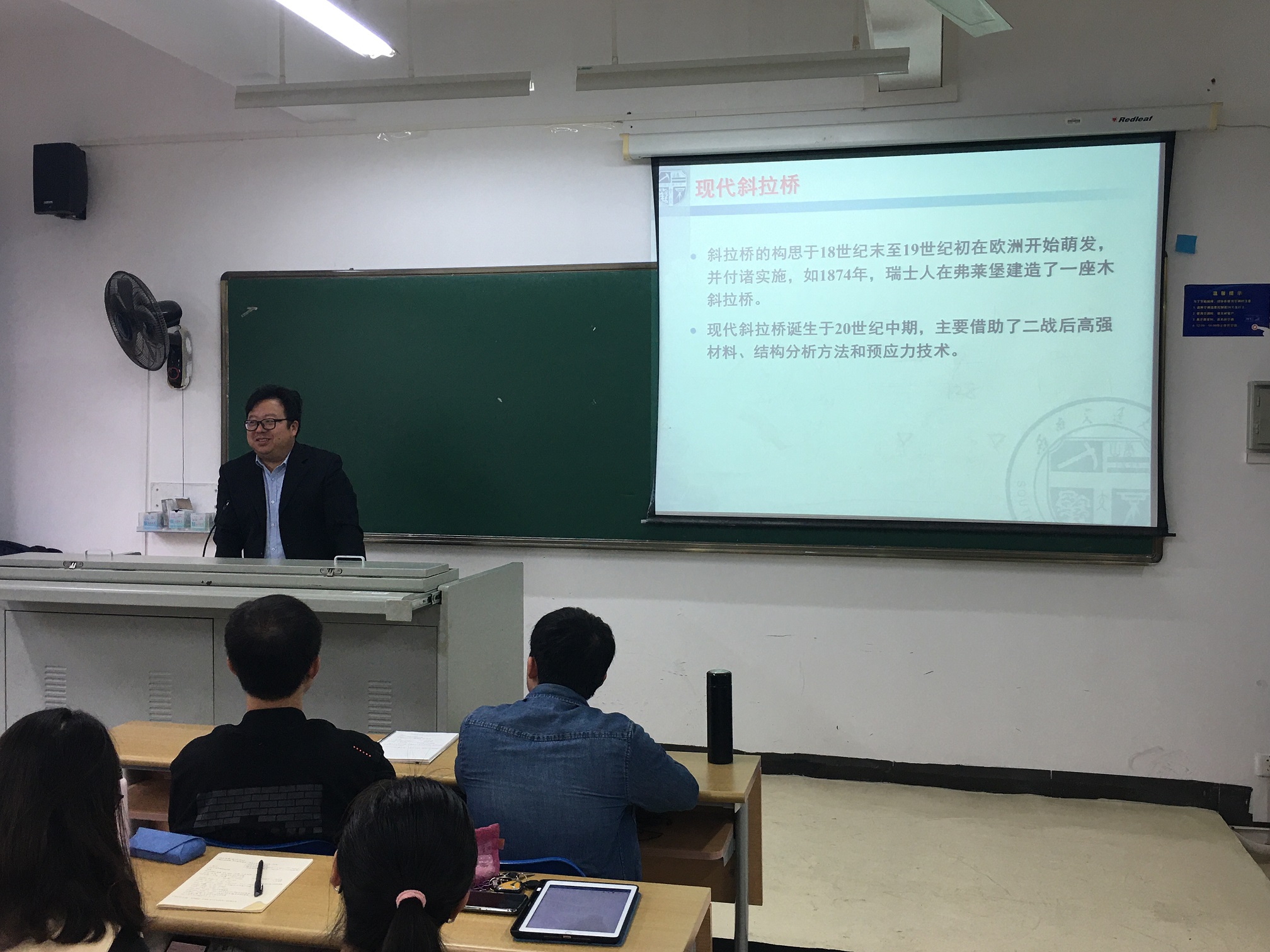 李教授以“大跨度桥梁工程及抗风设计”为题,于2019年12月29日至2019年12月31日期间,为土木工程专业2017级员工授课。李教授为员工讲述了近年来国内外大跨度桥梁建造技术发展及最新前沿、大跨度桥梁发展面临的关键性问题、大跨度桥梁抗风设计等内容,鼓励同学们努力学习专业知识,向更高的学位进发。
