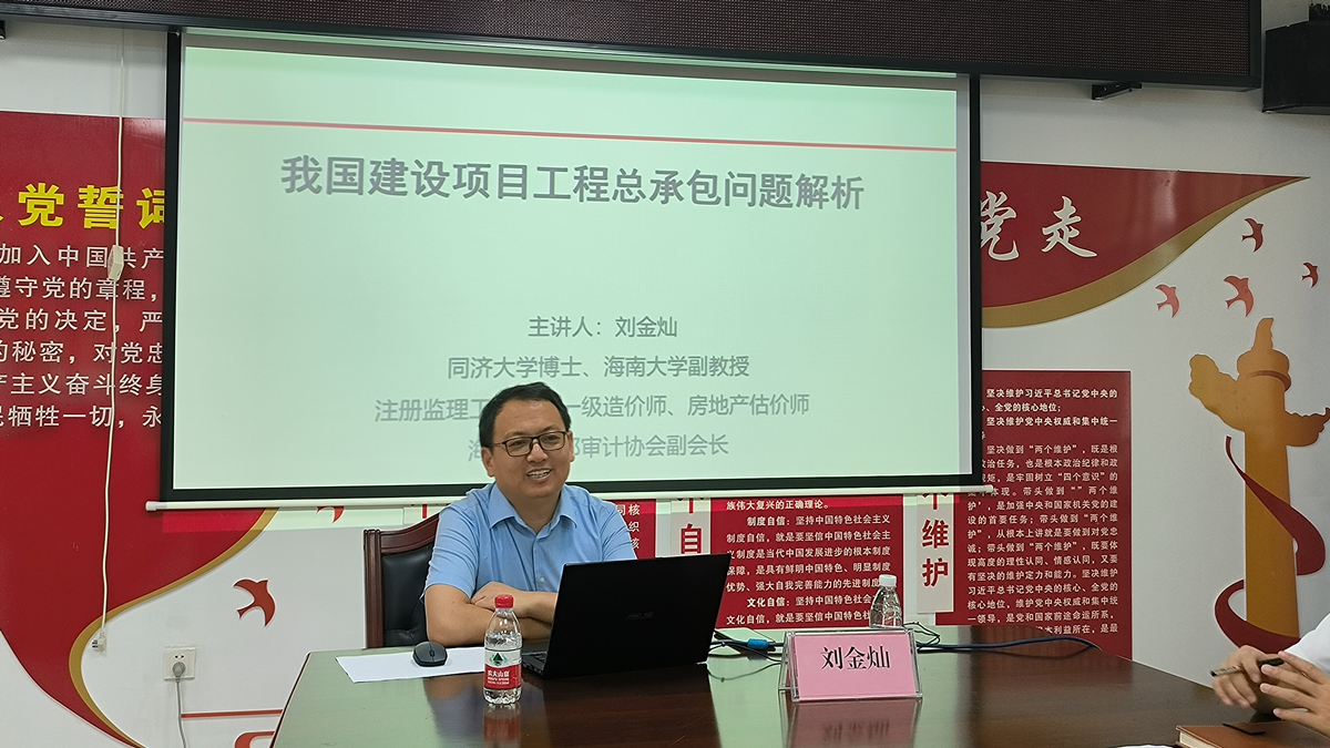 2022年6月9日,公司工程管理系副教授刘金灿老师受邀前往保亭县审计局、住建局,分别作业务能力提升讲座,助力政府部门干部能力提升建设。这是英国be365官网与保亭县政府签署政校合作框架协议及英国be365官网与保亭县审计局、住建局订立合作协议之后举行的系列活动之一。
