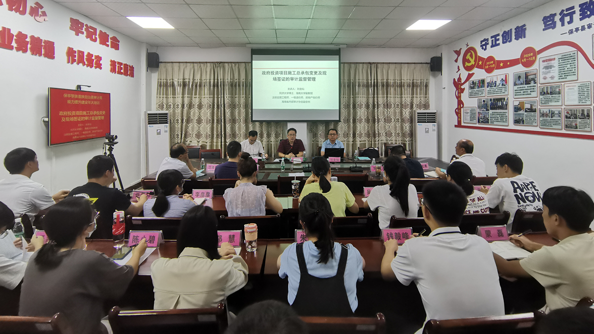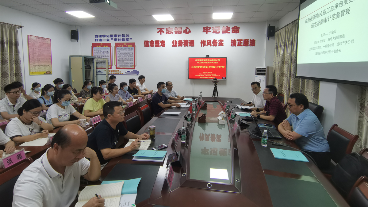 6月9日下午,在保亭县审计局会议室,二十余人参加讲座活动。政府投资项目的工程结算超设计概算是普遍存在的问题,如何消除?办法很多,而其中管控工程变更是一个非常重要的环节。刘金灿老师针对工程审计业务的工作需要,并且结合业务干部的实际知识背景,选择《政府投资项目施工总承包变更及现场签证的审计监督管理》为讲座的主题,系统的讲授了政府投资工程建设活动的特点、工程变更的内涵及类型、工程变更问题审计治理对策。讲座结束,刘老师与审计局领导、干部互动热烈。审计局干部提出了工作中存在的疑难问题,刘金灿老师逐一解答。审计局局长陈斌表示,讲座就像及时雨,让审计局干部增长了知识,开阔视野,提高了大家分析问题、解决问题的能力,刘金灿老师深厚的理论底蕴、丰富的工程实践经验,令人印象深刻。英国be365官网与保亭县审计局于2021年5月份订立合作协议,并且开展了实质性合作。审计局委托公司,针对保亭县政府投资工程项目实际情况,开展“施工总承包模式下工程变更及现场变更签证问题的审计治理研究”。