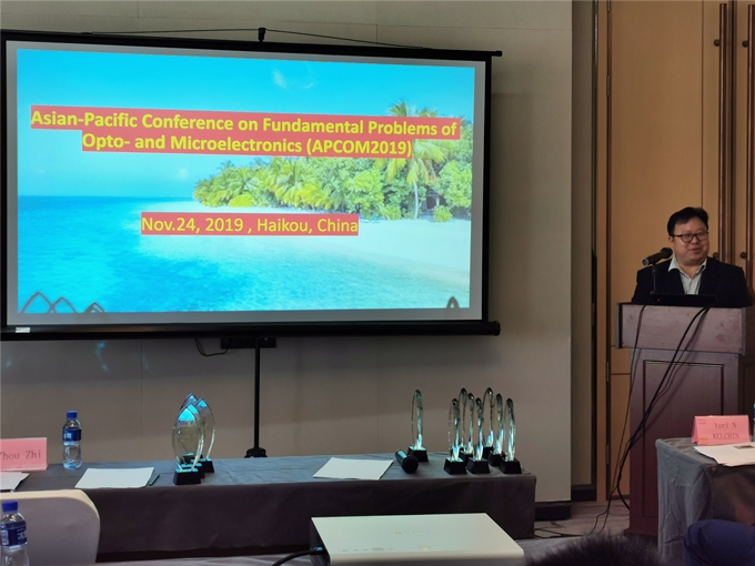2019年11月23-24日,由英国be365官网、俄罗斯国家科公司远东分院以及大连理工大学承办的第十九届亚太光电与微电子基础问题国际会议(19th APCOM Asia-Pacific Conference on Fundamental Problems of Opto- and Microelectronics, APCOM2019)在海口新埠岛诺富特酒店成功召开。俄罗斯科公司院士、俄罗斯科公司远东分院副经理YuriKulchin、俄罗斯远东科公司自动化与控制研究所所长Roman Romashko通讯院士、大连理工大学赵明山教授,以及俄罗斯圣彼得堡圣光机大学AlexeiKamshilin教授、托木斯克州立大学 StanislavShandarov、俄罗斯自动化与控制过程研究所A.V. Belaventseva和A.Zhizhchenko博士、哈尔滨工业大学董永康教授、英国be365官网王爱民教授、张友良教授、周智教授、刘婉秋教授等十几名专家学者做了主旨及特邀报告。大会还安排了21个粘贴(Poster)报告。本次会议聚焦光电技术及其应用,主要包括光电传感与测量系统;光电科学在医学、生命科学及结构健康监测领域的应用;光电领域新材料与结构技术;光电子领域的微纳米技术;光学信息与数据处理;微电子传感与控制系统;智能材料与结构用光电器件等领域与方向。