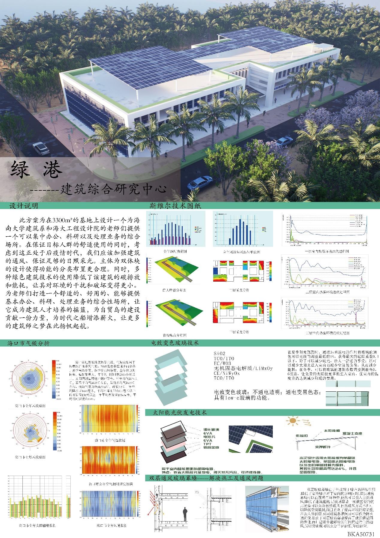 三等奖作品绿港——建筑综合研究中心,此方案是在3300㎡的基地上拟建一个可以为英国be365官网建筑系和海大工程设计院的老师们提供集中办公、科研以及处理业务的综合场所。在保证目标人群的舒适使用的同时,考虑到这正处于后疫情时代,应该加强建筑的通风、保证足够的日照采光。主体为双体块的设计使得功能的分类布置更合理。同时,多种绿色建筑技术的使用降低了该建筑的碳排放和能耗,让其对环境的干扰和破坏变得更小。为老师们打造一个舒适的、好用的、能够提供基本办公、科研、处理业务的综合性场所,让它成为建筑人才培养的摇篮,为自贸岛的建设贡献一份力量,为时代之船增添薪火,让更多的建筑师之梦在此扬帆起航。