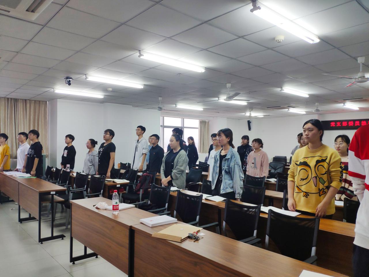 在国歌声中,开始了党支部支委的换届会议。