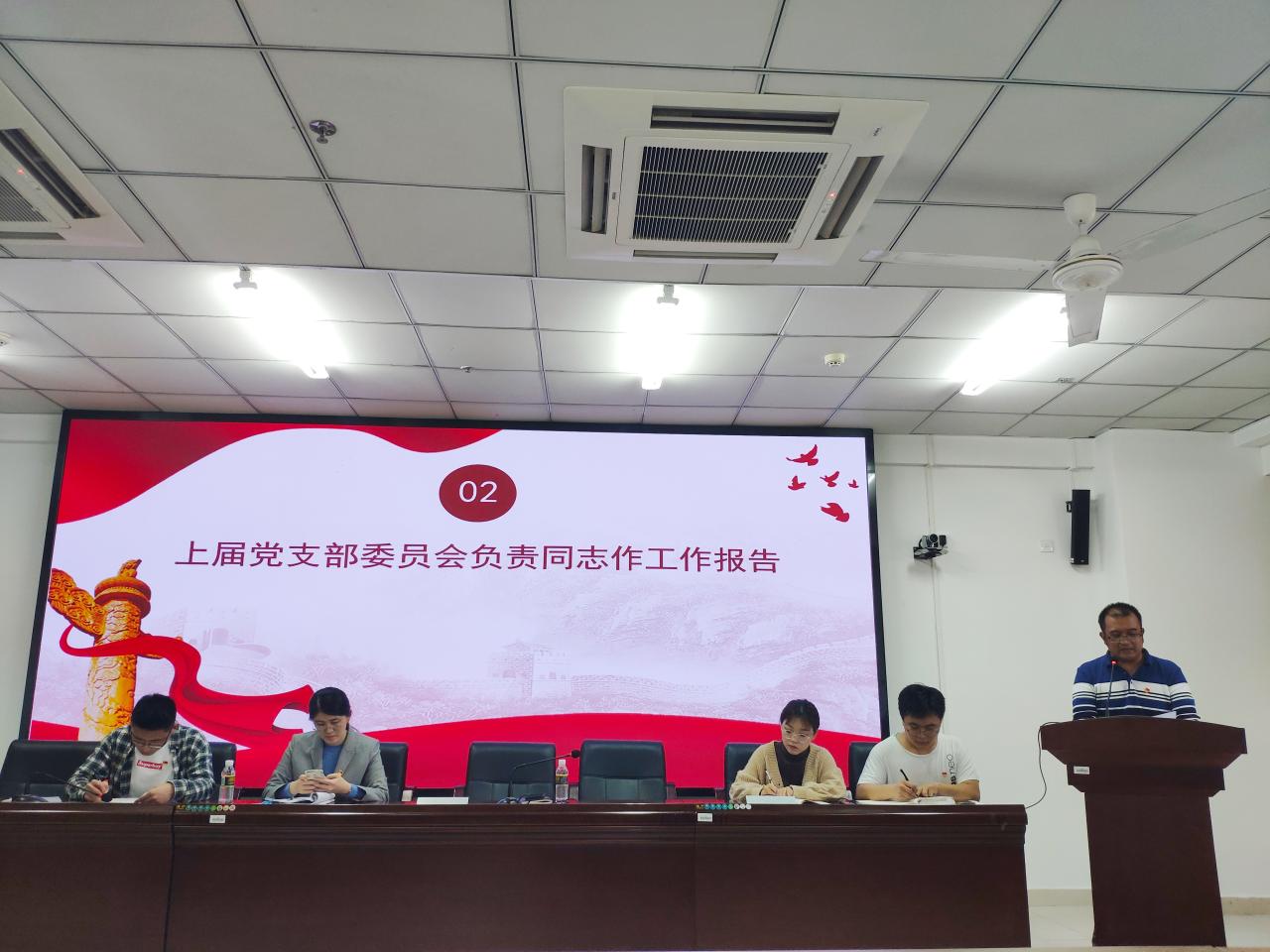 大会第一项内容,支部书记詹达夫代表上届党支部委员会在思想建设、组织建设等多方面作工作报告。支部全体党员认真听取了并全票通过了詹达夫书记代表上一届支部委员会的作出的工作汇报。