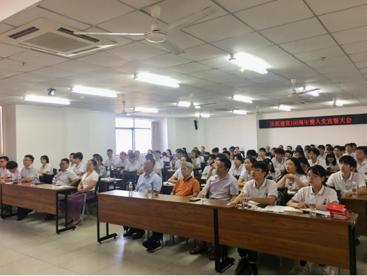 7月1日上午8:00时,公司党委在研发楼510会议室召开庆祝中国共产党成立100周年暨入党宣誓大会,公司党委书记卢江海、特邀党建组织员麦秀芬、党委副书记孙晓媛、党委委员副经理邱宙廷、陈云,副经理田元福以及师生党员共120余人参会。党委委员周智经理、张友良副经理在公司会场收看。